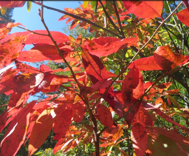 There are other hints as well. There are fewer reservations available at your favorite restaurant; the white holiday lights strung around Banyan and Palm trees, outlining their trunks and branches are slowly turning on as the days grow shorter; all the multi-colored annuals are bedded and sprinklers are furiously making sure that they root and take. But they don’t equate with the drama of the sun-filtered reds, gold, yellow and oranges of a tree standing proud against a deep blue sky.